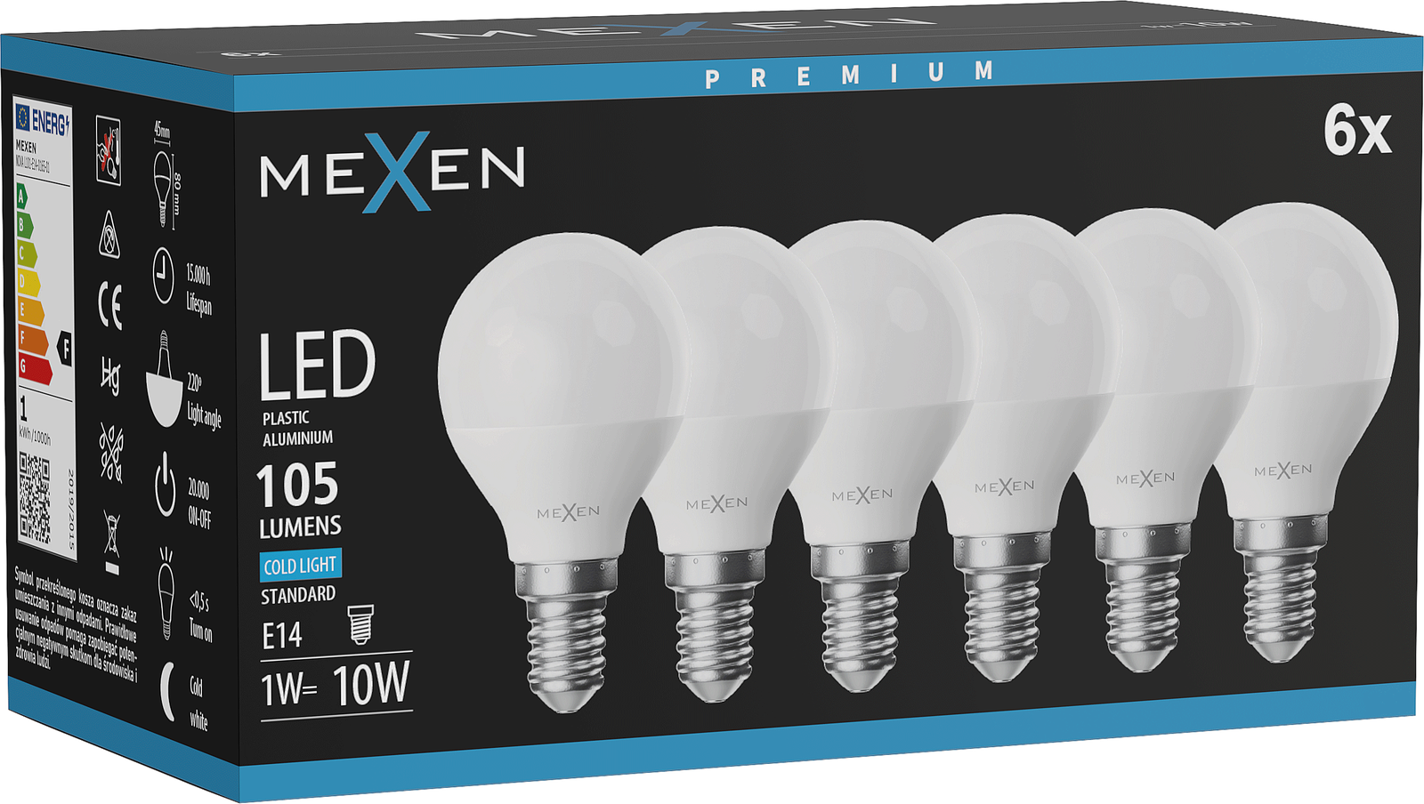 Mexen Nova LED žiarovka E27, A60, 6W, Studená - 6500K, 630 lm - L100-E27-0665-01
