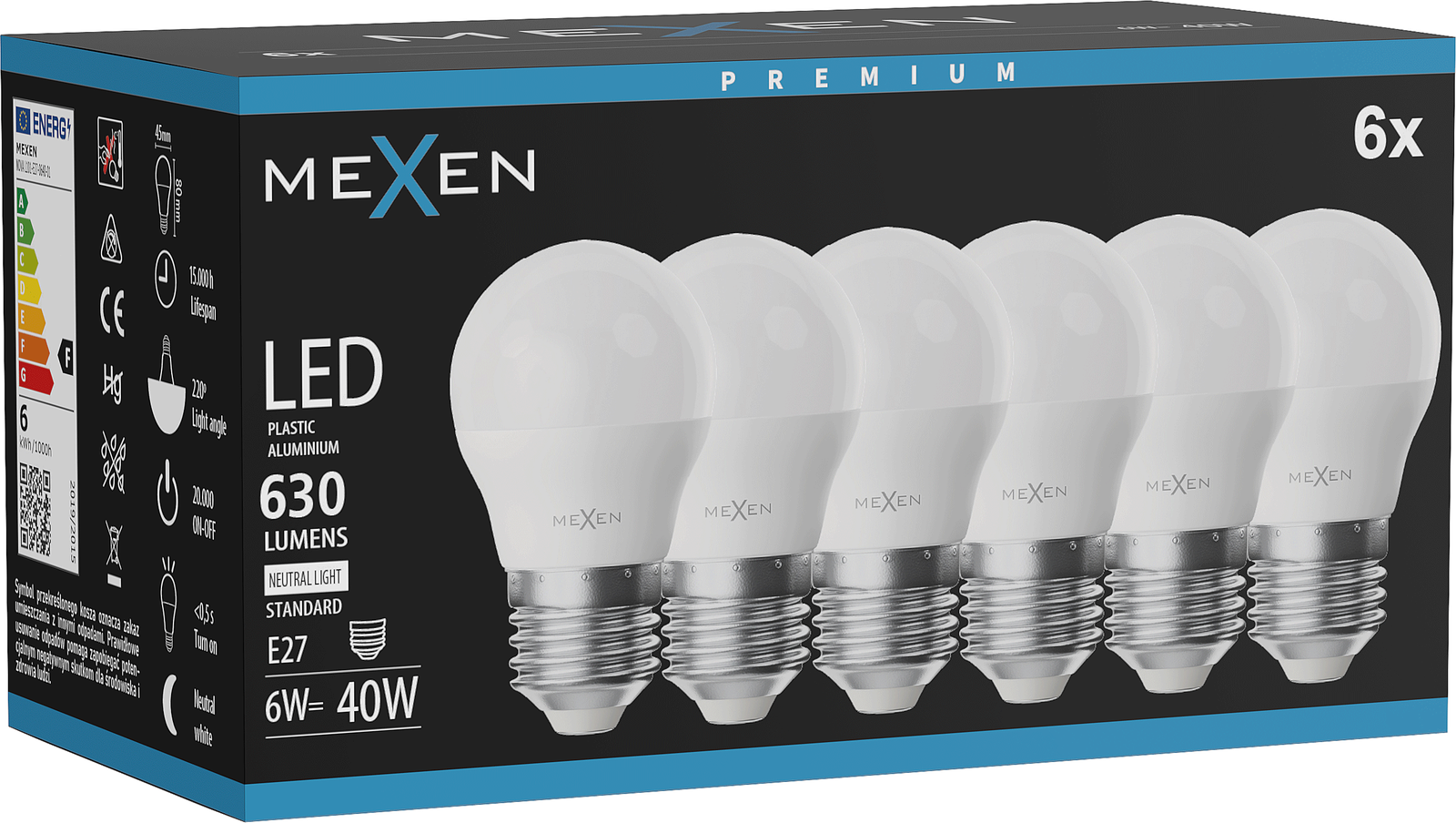 Mexen Nova LED žiarovka E27, A60, 6W, Neutrálna - 4000K, 630 lm - L100-E27-0640-01
