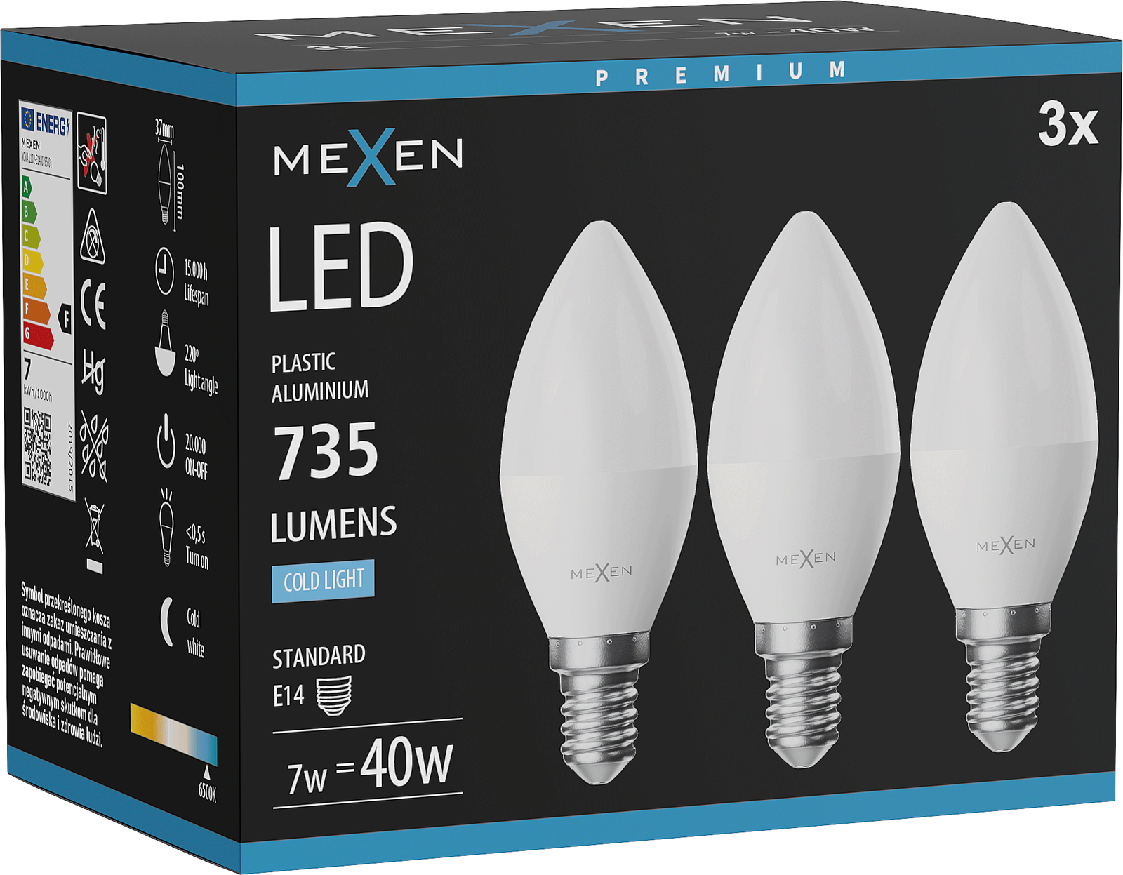 Mexen Nova LED žiarovka E27, A60, 6W, Studená - 6500K, 630 lm - L100-E27-0665-01