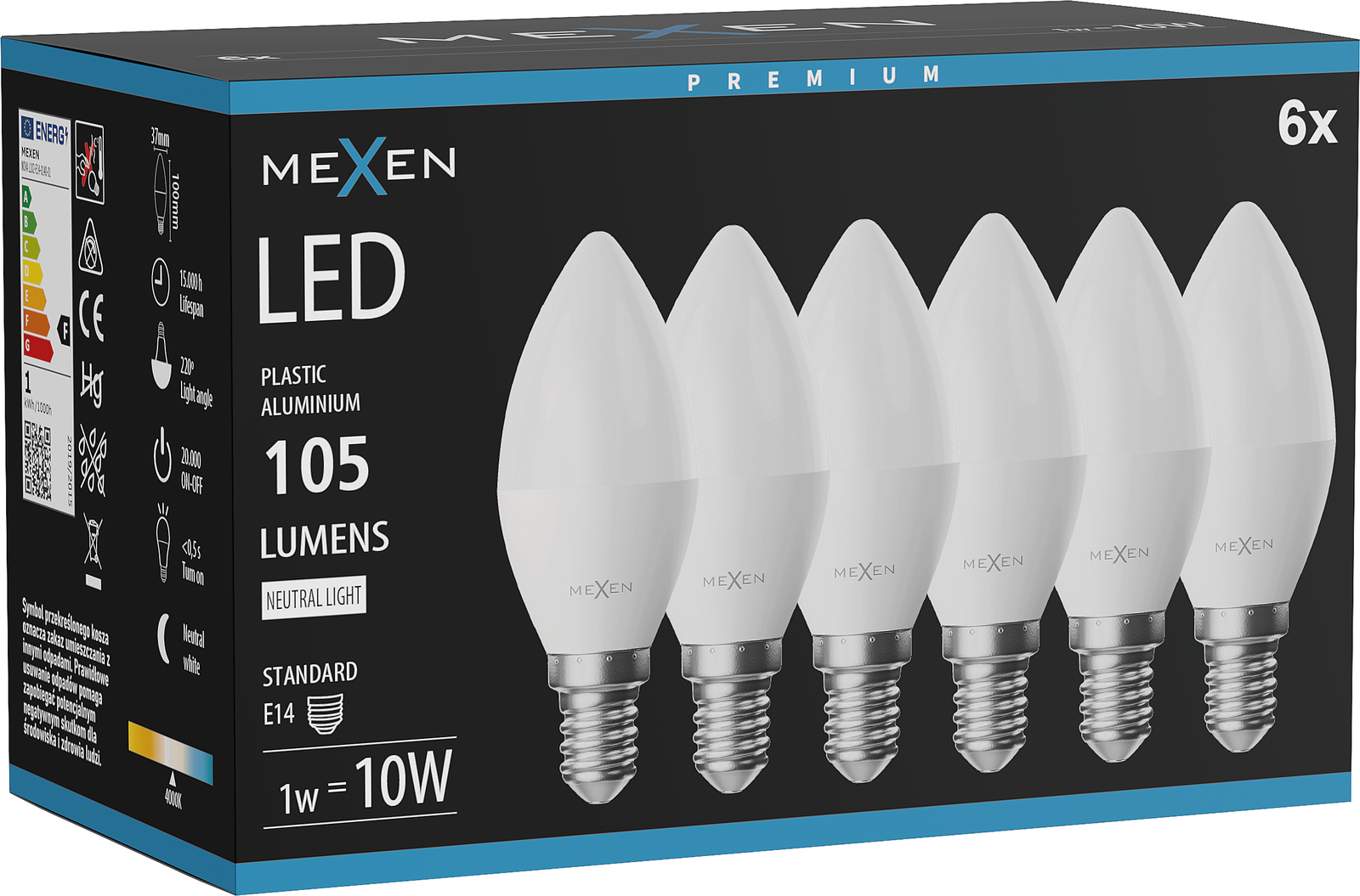 Mexen Nova LED žiarovka E27, A60, 6W, Neutrálna - 4000K, 630 lm - L100-E27-0640-01