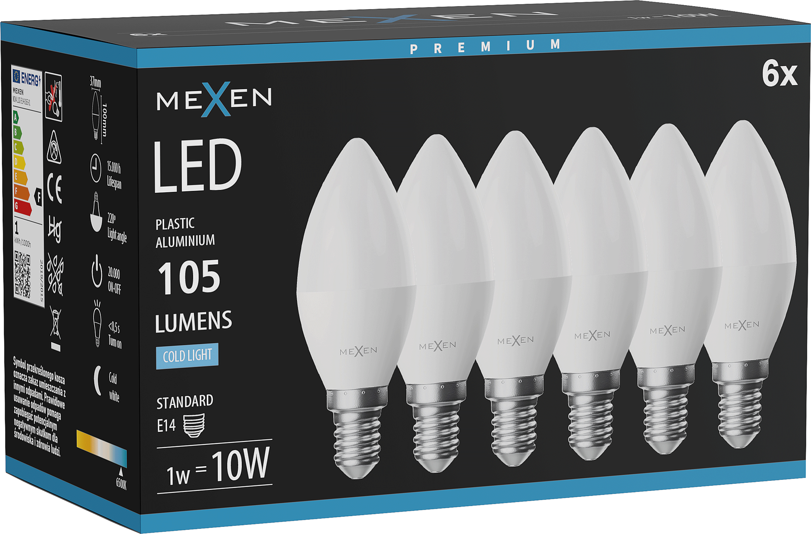 Mexen Nova LED žiarovka E27, A60, 6W, Studená - 6500K, 630 lm - L100-E27-0665-01