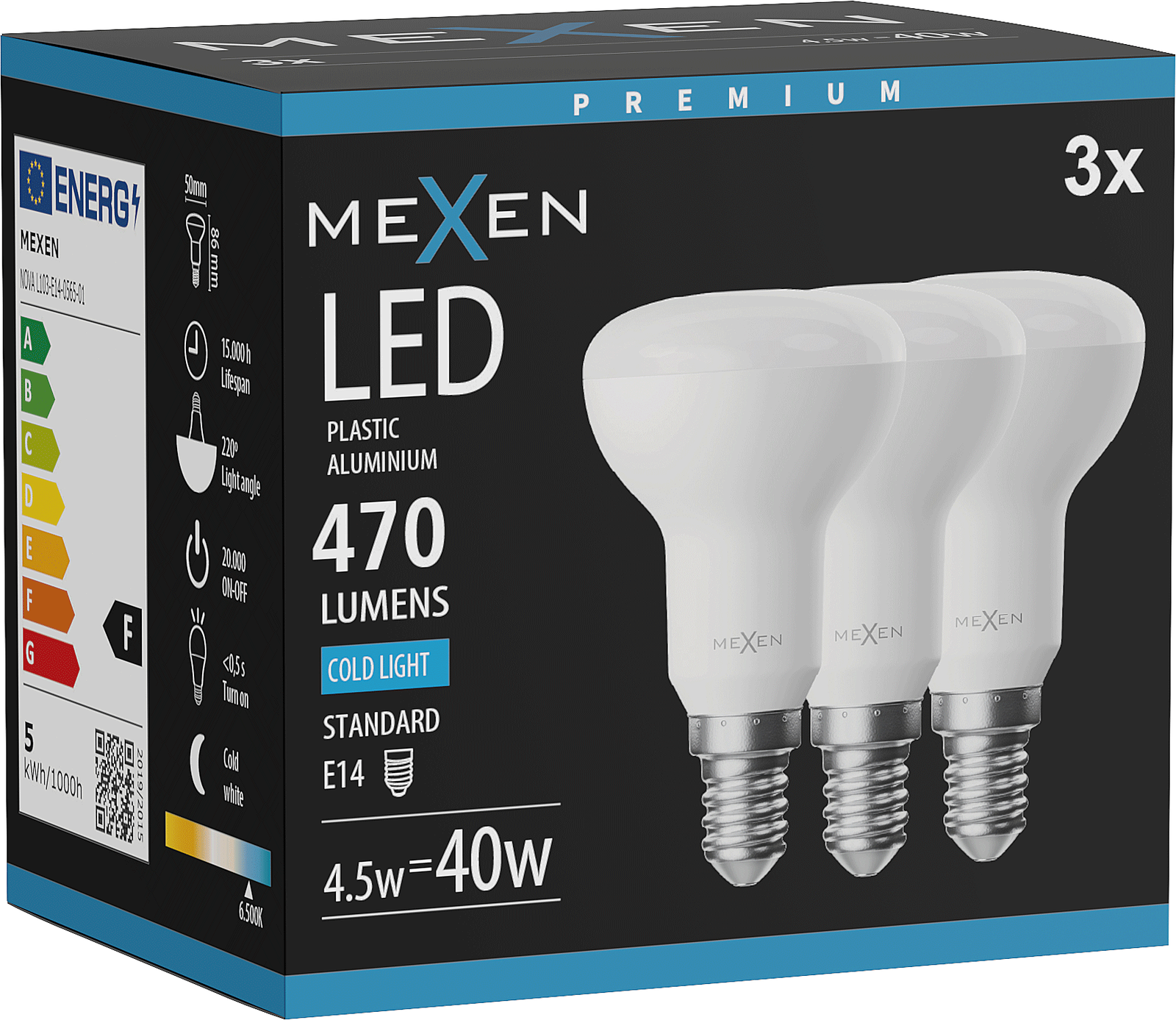 Mexen Nova 3x LED žiarovka E14, R50, 4,5W, Studená - 6500K, 470 lm - L103-E14-0565-01x03