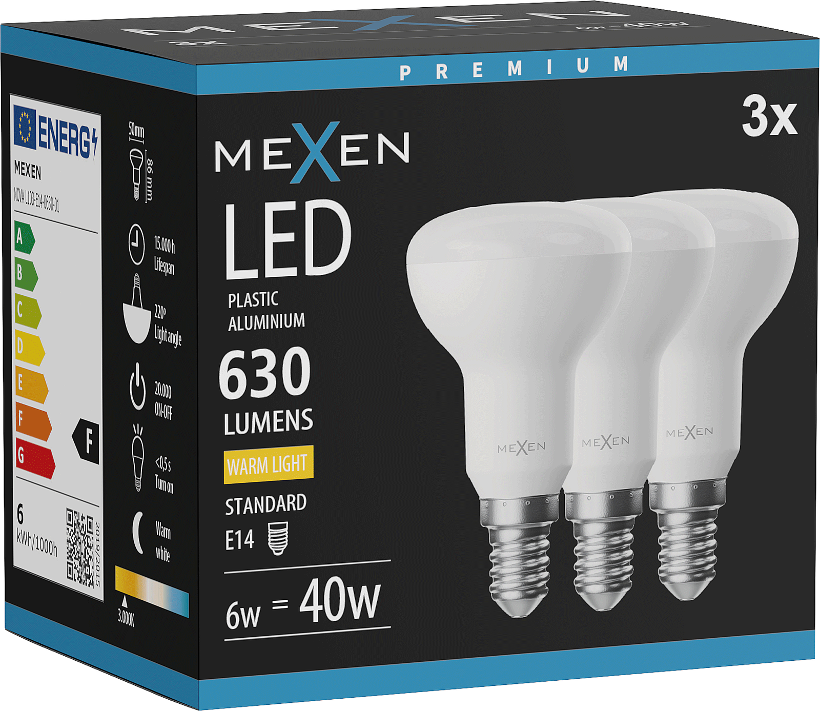 Mexen Nova 3x LED žiarovka E14, R50, 6W, Teplá - 3000K, 630 lm - L103-E14-0630-01x03
