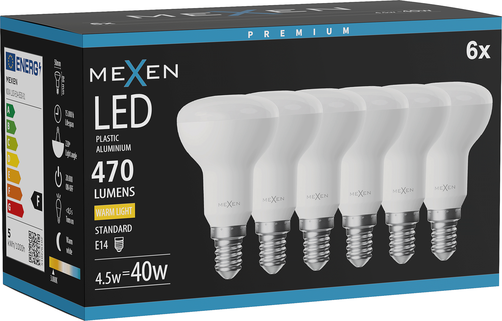 Mexen Nova 6x LED žiarovka E14, R50, 4,5W, Teplá - 3000K, 470 lm - L103-E14-0530-01x06