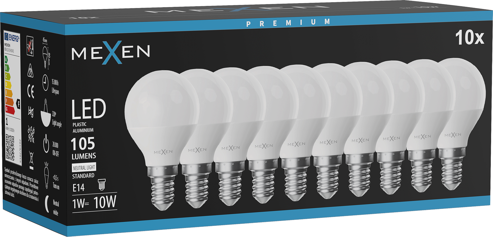 Mexen Nova 10x LED žiarovka E14, G45, 1W, Neutrálna - 4000K, 105 lm - L101-E14-0140-01x10