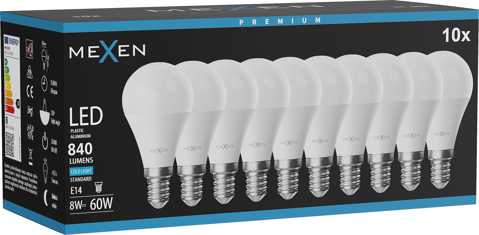 Mexen Nova 10x LED žiarovka E14, G45, 8W, Studená - 6500K, 840 lm - L101-E14-0865-01x10