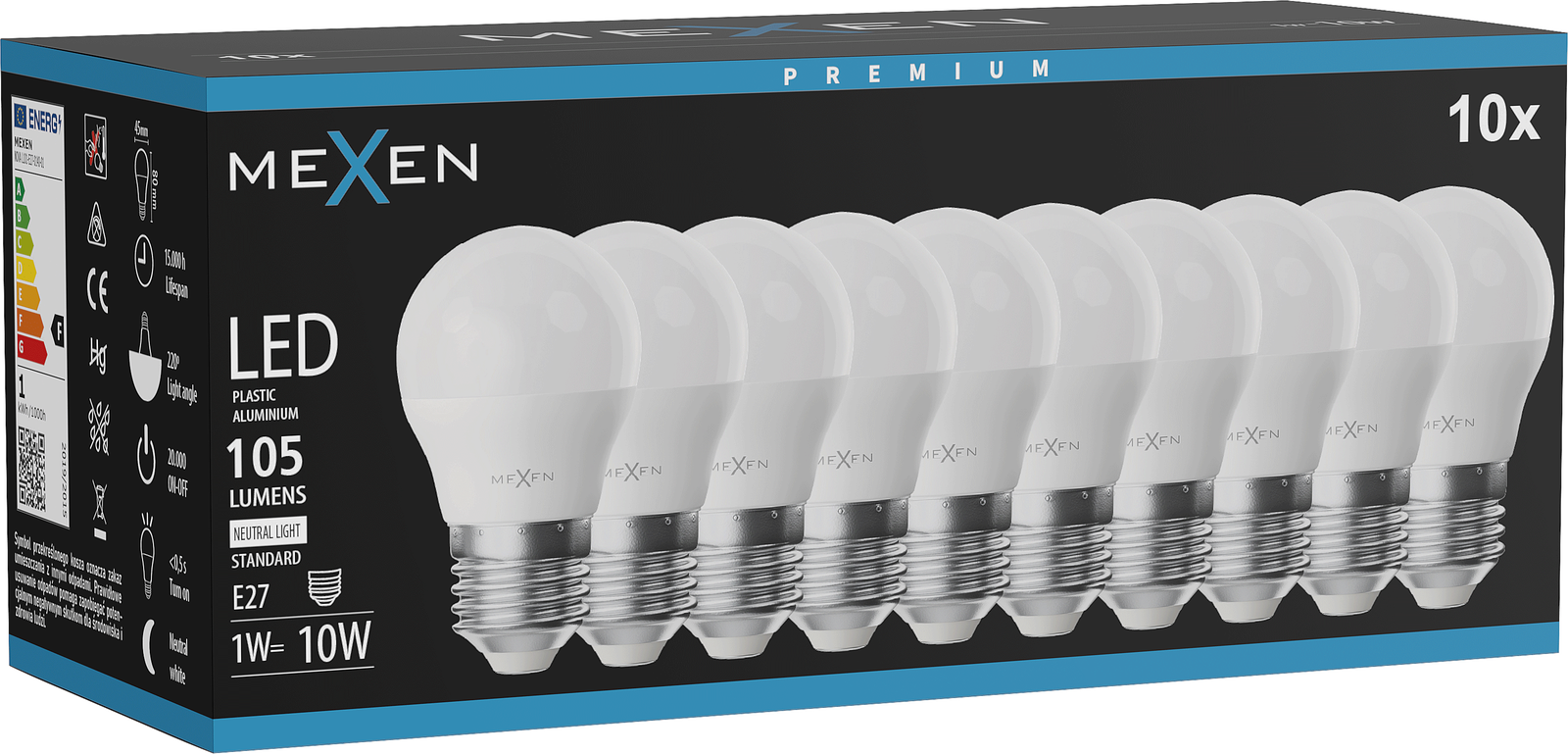 Mexen Nova 10x LED žiarovka E27, G45, 1W, Neutrálna - 4000K, 105 lm - L101-E27-0140-01x10