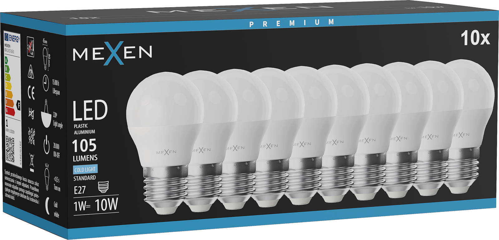Mexen Nova 10x LED žiarovka E27, G45, 1W, Studená - 6500K, 105 lm - L101-E27-0165-01x10