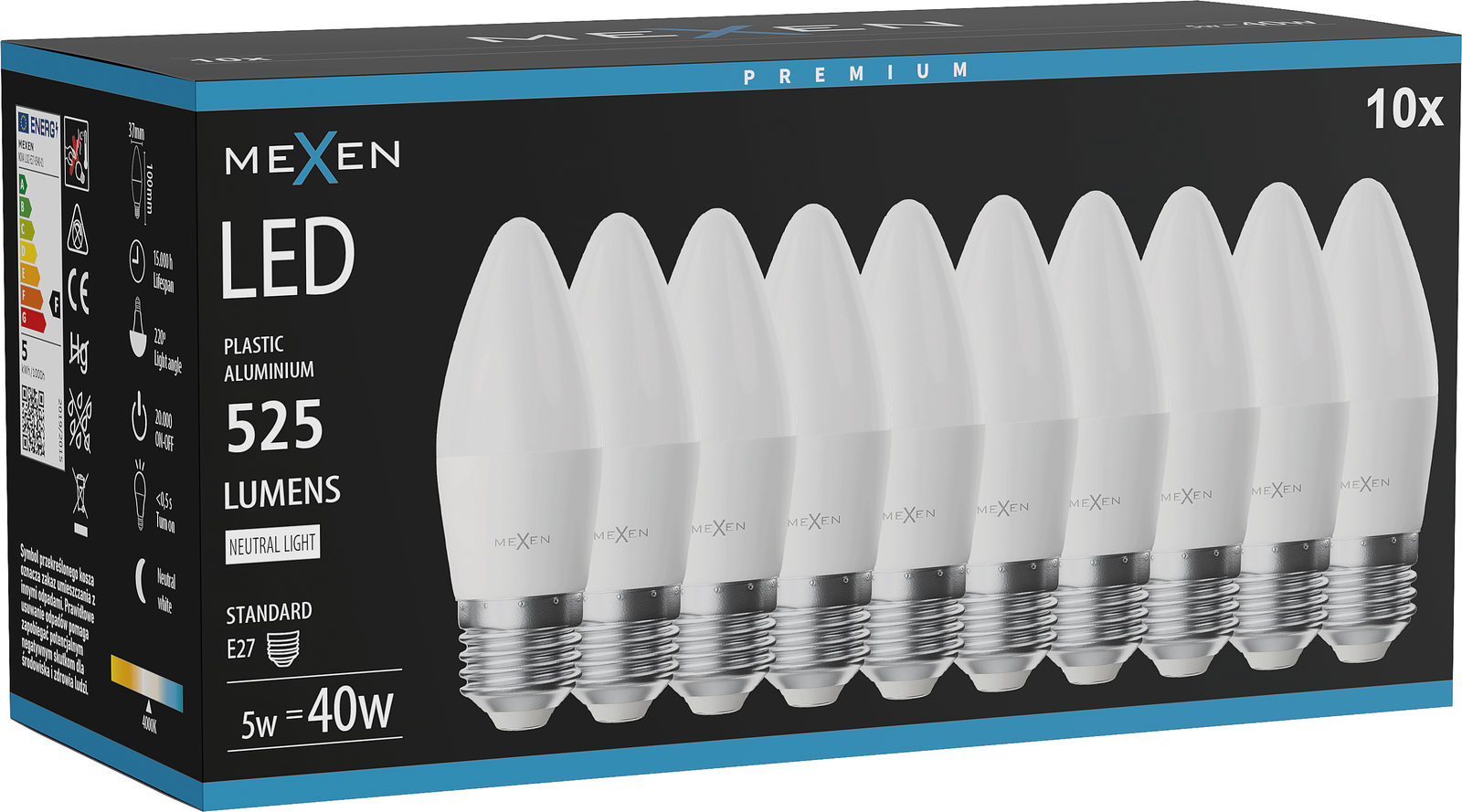 Mexen Nova 10x LED žiarovka E27, C37, 5W, Neutrálna - 4000K, 525 lm - L102-E27-0540-01x10