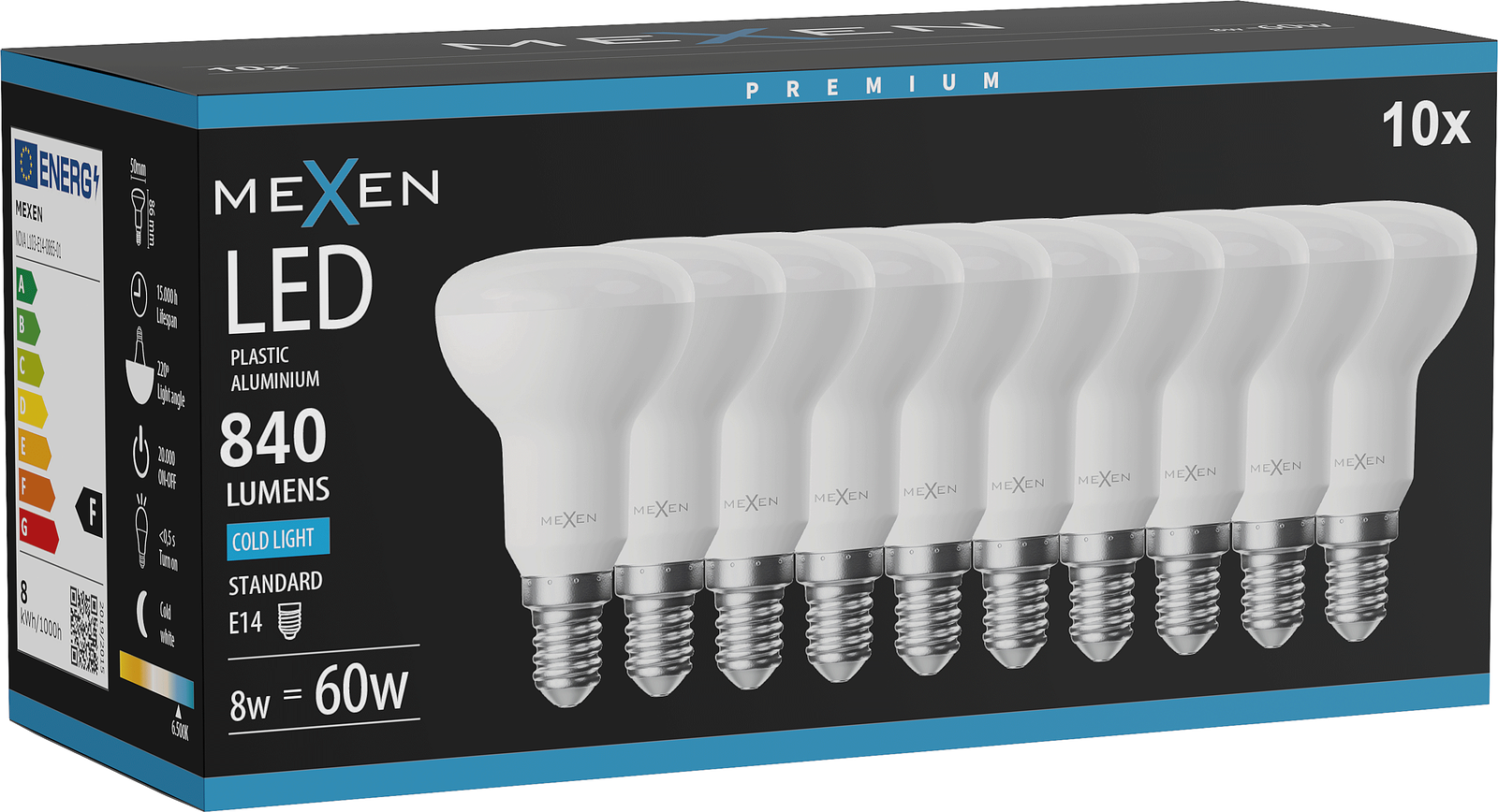 Mexen Nova 10x LED žiarovka E14, R50, 8W, Studená - 6500K, 840 lm - L103-E14-0865-01x10