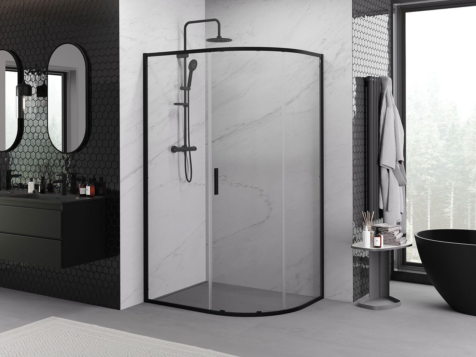 Mexen Exo sprchová kabína polo-oválna asymetrická posuvná 120 x 80 cm, transparentná, čierna - 8131-120-080-70-00