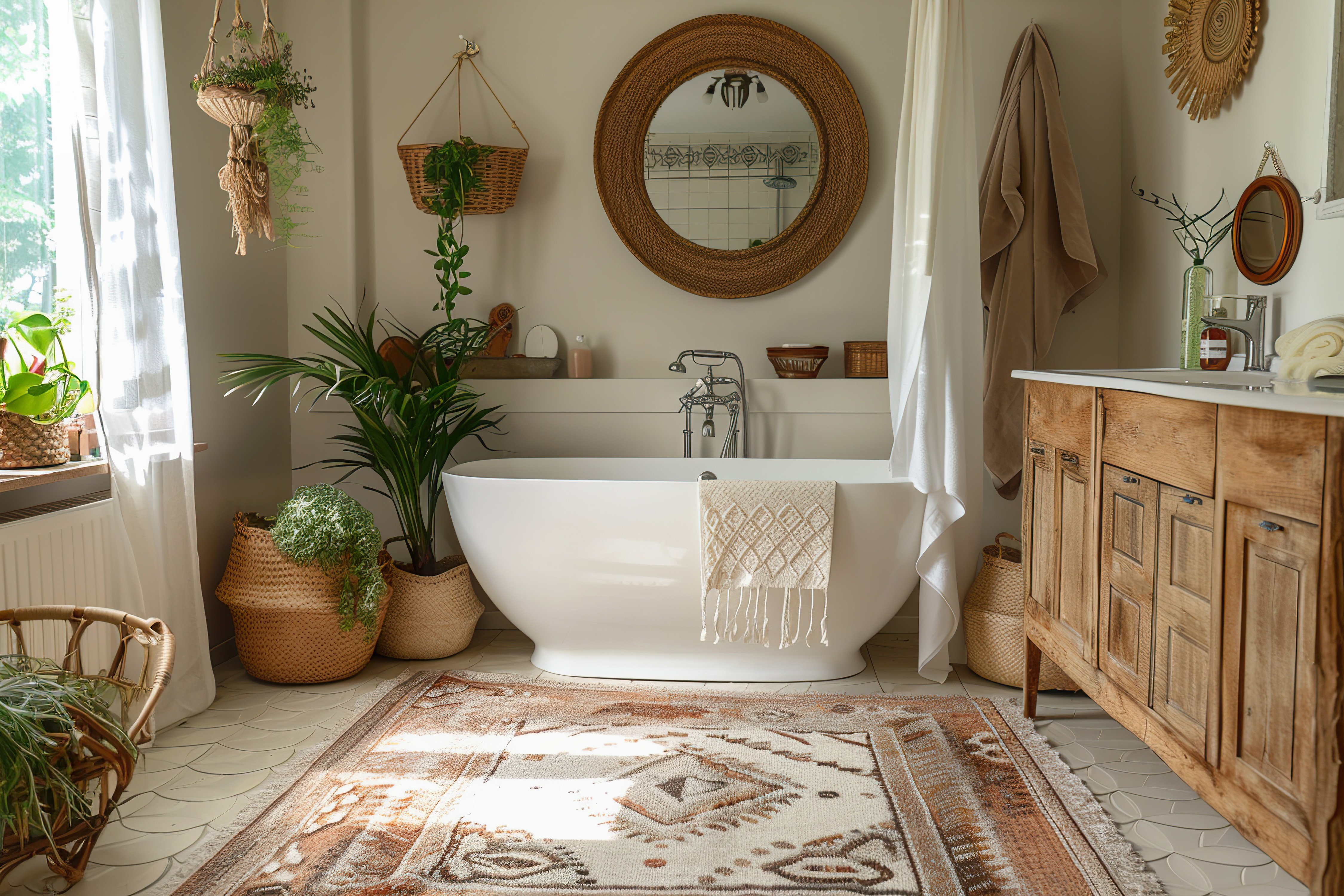 Čo je dôležitým prvkom štýlu boho pri aranžovaní kúpeľne?