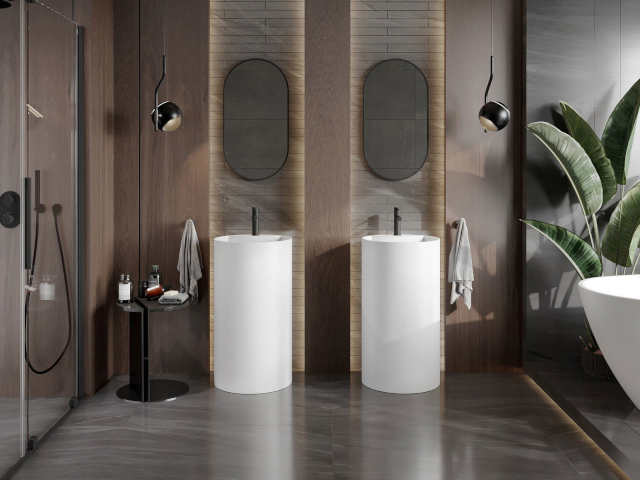Jednotná plocha čela usporiada kompozíciu steny, vedie zraky nahor a nespôsobuje pocit ťažkosti. Práve toto rozlišuje regál stĺp a dáva mu prevahu nad tradičným nábytkom. Kúpeľňový stĺpik visiaci využíva priestorový potenciál kúpeľne a zároveň umožňuje opticky odľahčiť priestor, čo je rozhodne výhodou tohto riešenia. Kúpeľňový stĺpik tiež spája užívateľské zóny do súvislého celku, ktorý vyzerá ako na mieru vyrobený. Samozrejme, pod podmienkou, že k nemu vyberiete skrinku pod umývadlo z tej istej kolekcie.